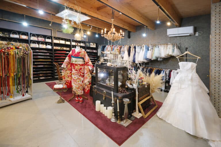 七五三はもちろん、お宮参り、訪問着、成人振袖などの衣装が250着以上。 一ッ葉店で選んで頂き、撮影当日に西都店でご準備させて頂きます。
